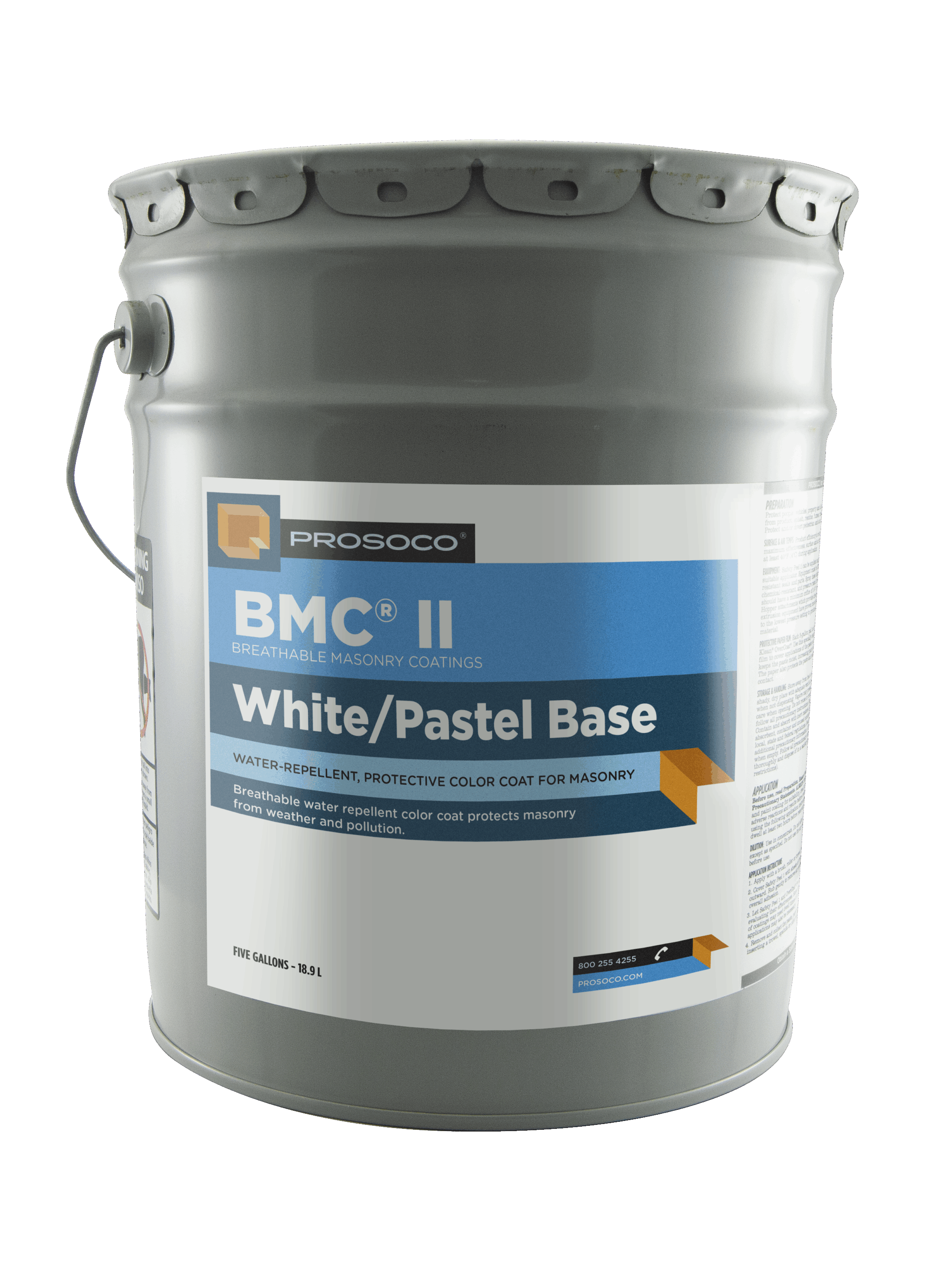 Breathable Masonry Coating II combines the beauty of high-quality paint with the protective power of breathable water repellents. BMC II lets water vapor escape from masonry, while stopping destructive liquid water from entering. The masonry’s appearance is preserved, and its service life is prolonged. BMC products have been used on the U.S. Capitol and many other historic and contemporary buildings throughout the United States and Europe. Its unique silicone emulsion formulation makes the coating more resistant to weathering (UV, moisture and soiling) and so more durable and lasting than most conventional paints. BMC is a special order product. Production lead times may apply.