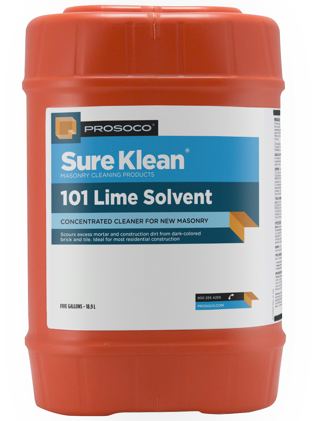 Sure Klean 101 Lime Solvent is a concentrated acidic cleaner for dark-colored brick and tile surfaces which are not subject to metallic oxidation. Safely removes excess mortar and construction dirt.