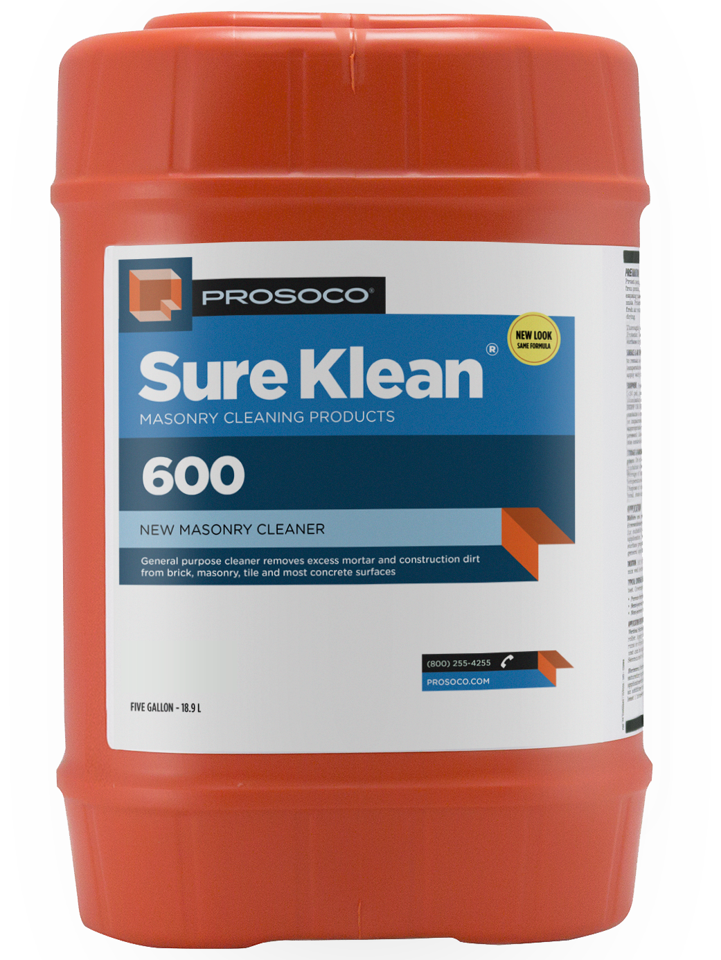 PROSOCO Sure Klean® 600 is the No. 1-selling proprietary cleaner for new masonry and is recommended by many brick, block, tile and mortar manufacturers. This general purpose, concentrated acidic cleaner dissolves mortar smears and construction dirt quickly, leaving the masonry clean and uniform with no acid burning or streaking. Safer than muriatic acid for new masonry surfaces. It removes efflorescence on bricks, new concrete and new stone construction. Application is fast and easy with a cold-water rinse. Special wetting agents let larger masonry surfaces be cleaned at one time, eliminating streaking.